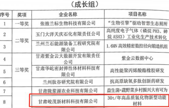 近日,从第十一届中国立异创业大赛(甘肃赛区)组委会获悉,兰州新区专精特新化工工业孵化基地的两家入驻企业——甘肃峻茂新质料科技有限公司和兰州昱重医药科技有限公司划分荣获第十一届中国立异创业大赛(甘肃赛区)优秀企业奖。